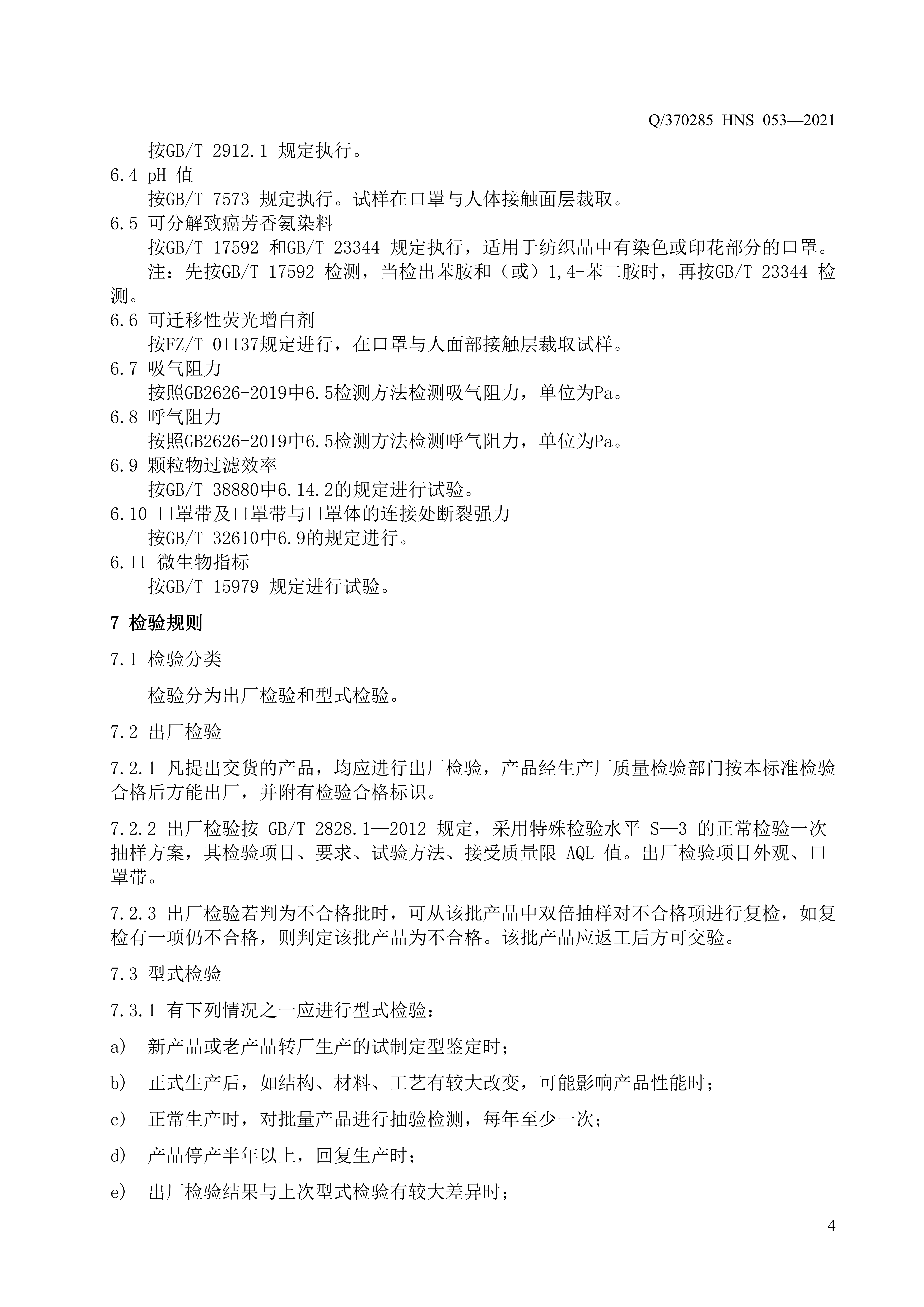 青岛海诺生物工程有限公司企业标准 — 一次性使用儿童口罩